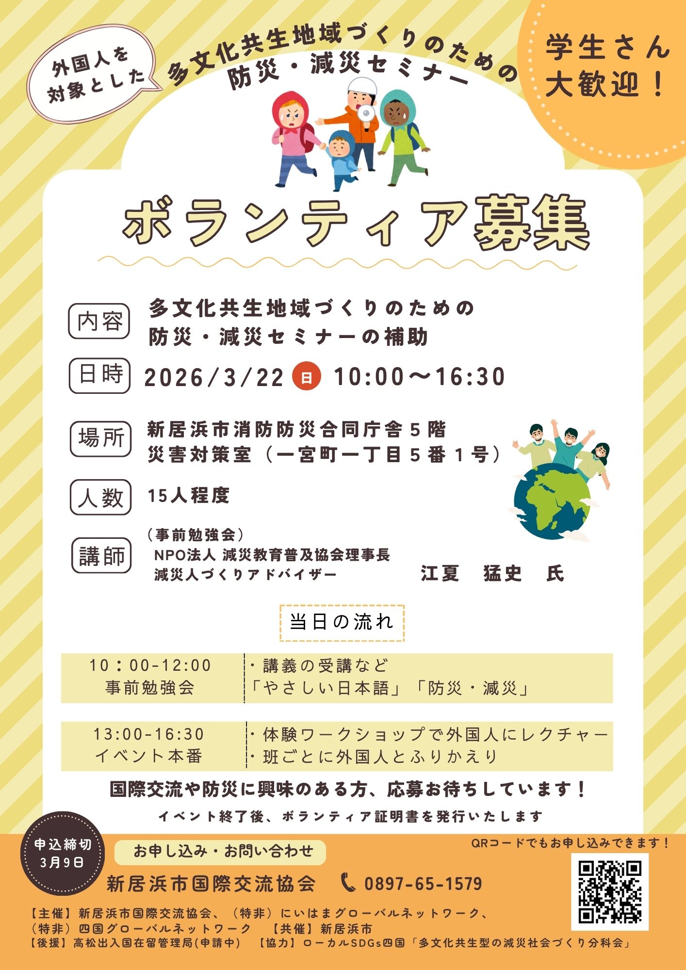 外国人を対象とした防災・減災セミナーのボランティアを募集しています!