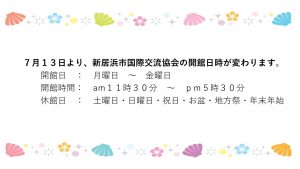 新居浜市国際交流協会 開館日時が変わります