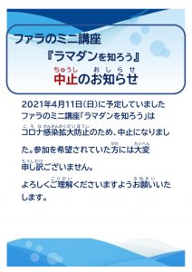 国際交流員ファラさんのミニ講座「ラマダンを知ろう」の中止のお知らせ