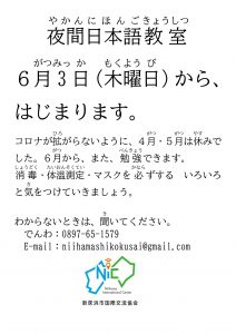 夜間(やかん)日本語(にほんご)教室(きょうしつ)についてお知(し)らせ
