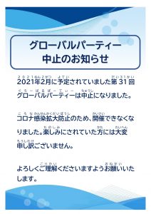 グローバルパーティ中止(ちゅうし)のお知(し)らせ